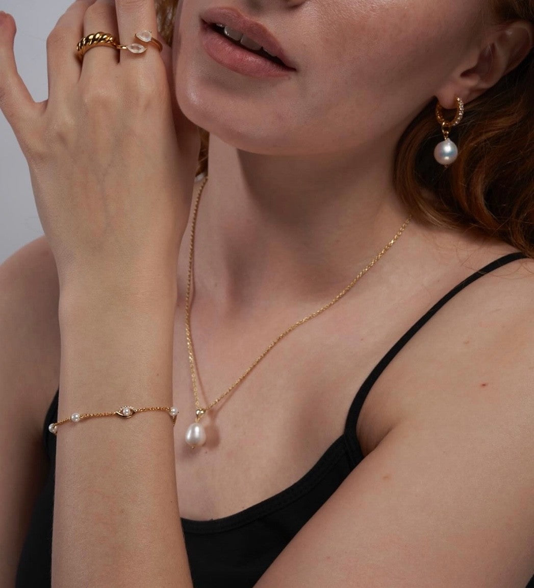 Cordelia Pearl Honeycomb Hoops