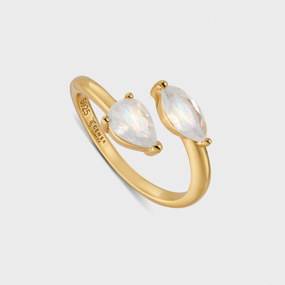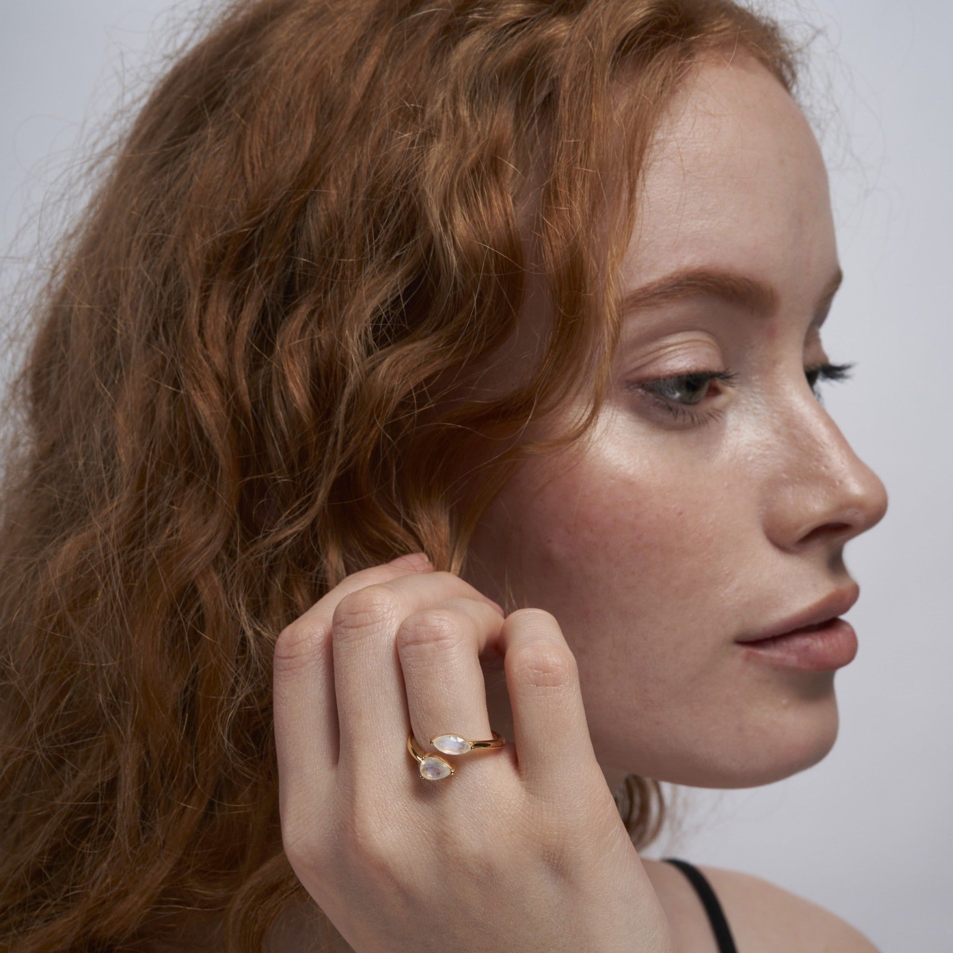 Ayla Moonstone Adjustable Ring - Marquise & Pear