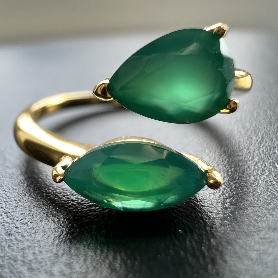 Chloé Green Onyx Adjustable Ring - Marquise & Pear